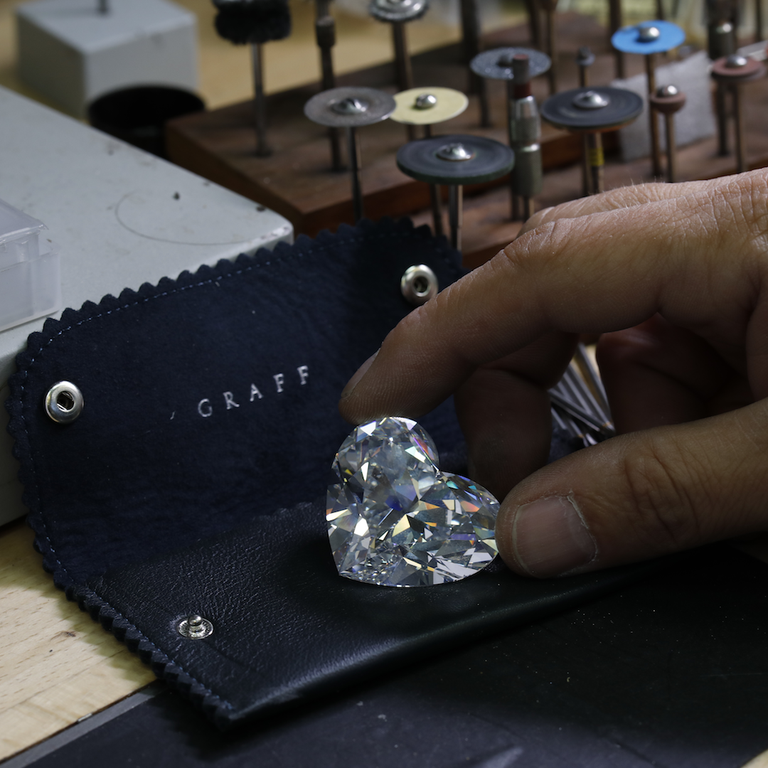 劳伦斯召集专家团队,识别出最细微的瑕疵,绘制出精确的结构。一位拥有40多年经验的切割大师将其雕琢为心形,完全对称,拥有无可挑剔的尖角、刻面和优美的轮廓。