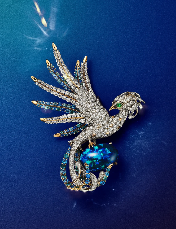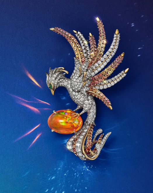 作为 “百鸟之王”的凤凰,即便并非真实存在的生灵,却是鸟类主题珠宝中绝不可缺席的经典符号。