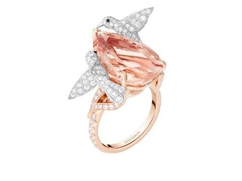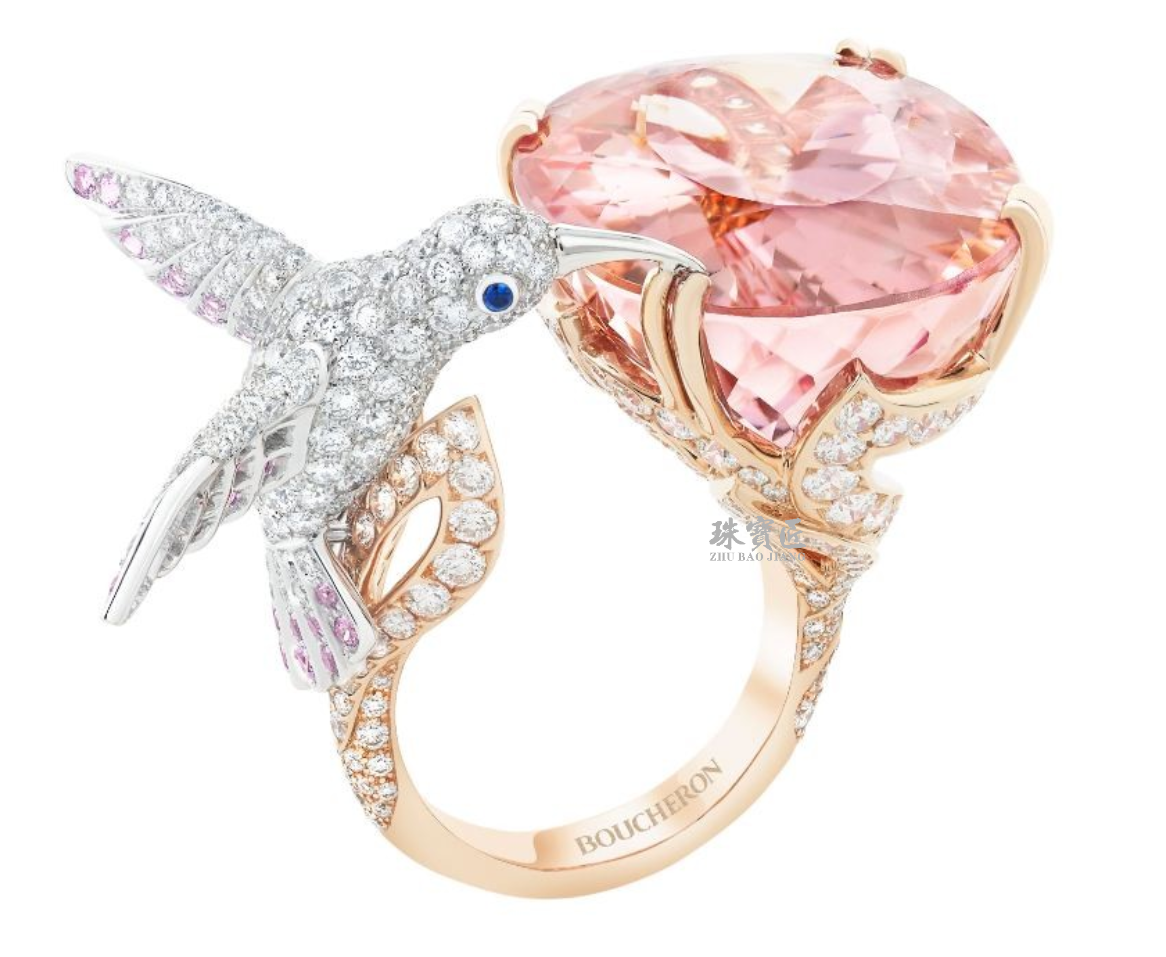 宝诗龙的 Hopi 主题珠宝,则捕捉到蜂鸟悬停于空中的瞬间,粉色的摩根石展现出蜂鸟的宁静与优雅。