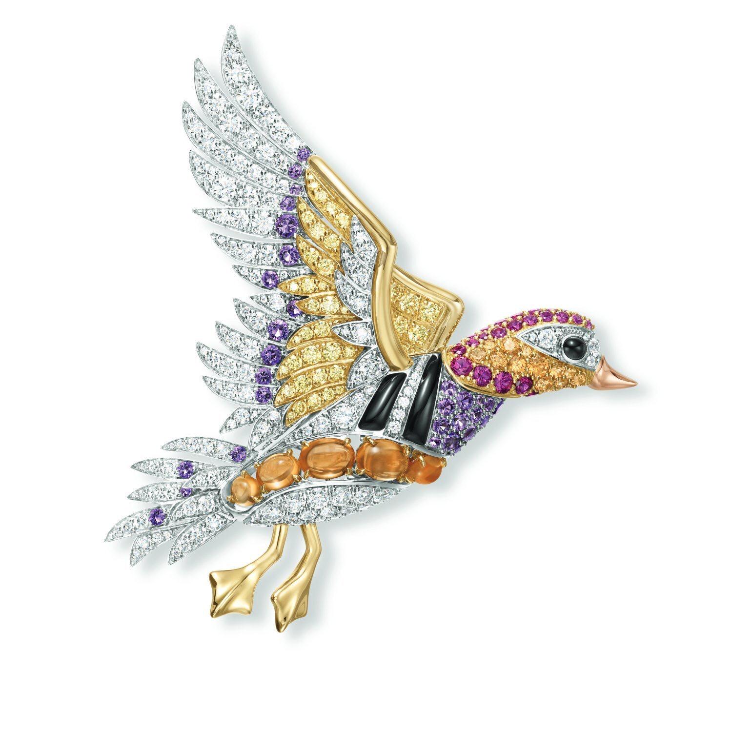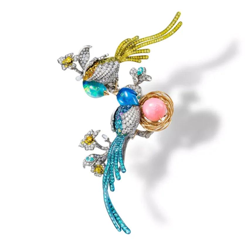 当飞鸟闯入珠宝的世界,茂密的羽翼被黄金重新勾勒,眼眸被璀璨的宝石点亮光彩。