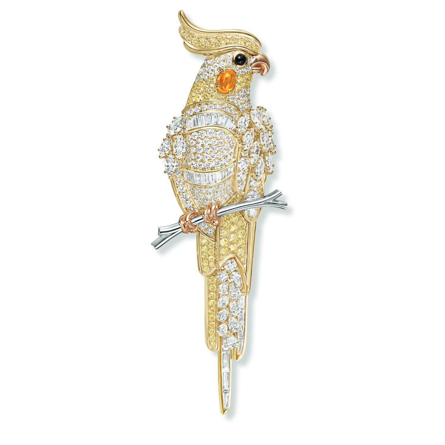 除了蒂芙尼珠宝元素中常见的葵花凤头鹦鹉外,格拉夫也对它的表亲——牡丹鹦鹉“情有独钟”。